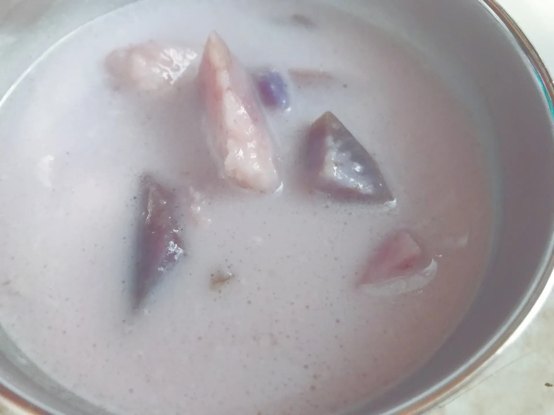 Creamy taro and purple yam soup seasoned with earthy spices. A vibrant, comforting bowl rooted in tradition.